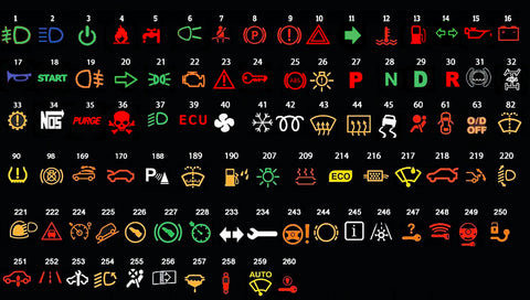 Let’s take a look at some common car warning indicator lights.The picture below shows all the car indicator lights, including the car problem indicator lights.If the car indicator light stays on, it means that you you can mat have a fault,so the car dashboard indicator lights is very timely for prompt of the fault.