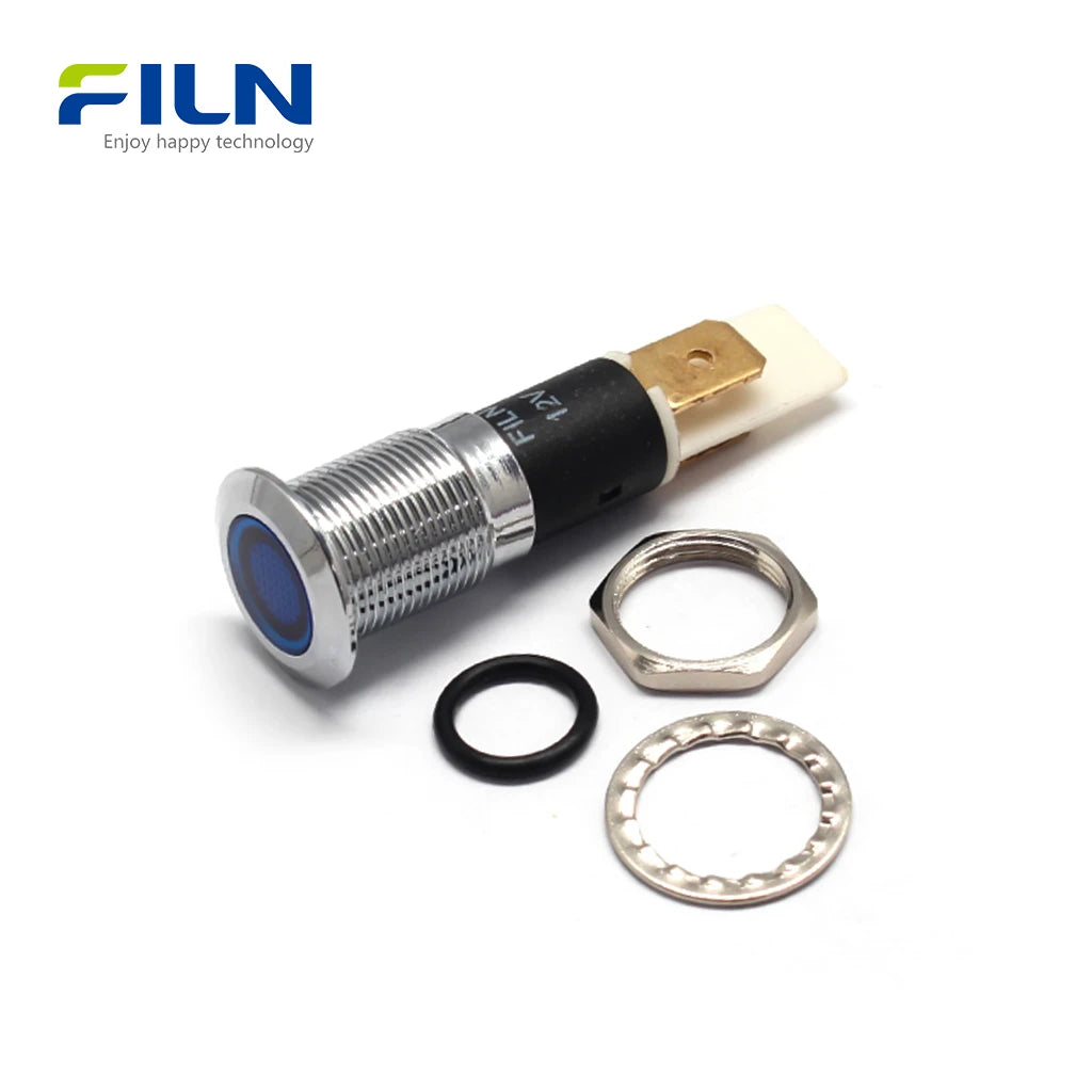 Product OverviewThe 120V LED panel indicator lights (Model: FL1M-12FJ-1) are professional-grade signaling solutions designed for durability and clarity. These 12mm metal pilot lamps feature a robust flat-head design and 2-pin terminals for secure electrical connectivity. Engineered for global industrial standards, FILN indicator lights carry ISO9001, CE, VDE, RoHS, SGS, UL, and IP67 certifications[cite: 2]. They are primarily used in CNC machinery, industrial control panels, medical devices, and marine systems. The core advantage lies in the high-brightness LED chip and the corrosion-resistant metal housing (available in silver or black), ensuring reliable performance in harsh environments with an IP67 waterproof rating.