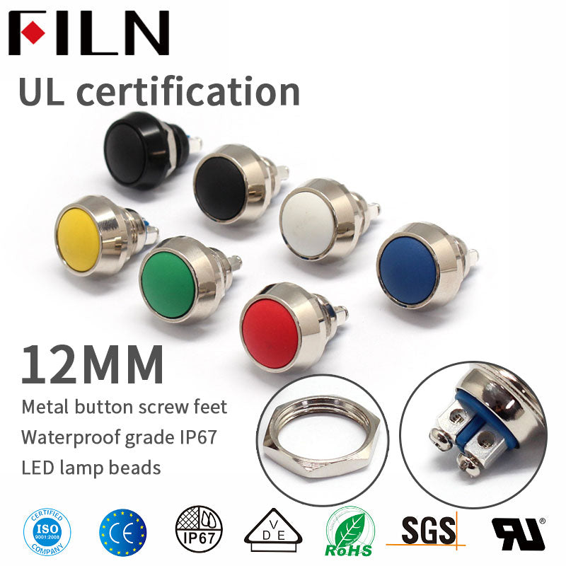 12MM metal push button switch can make five colors of light: red, yellow, blue, green, and white.