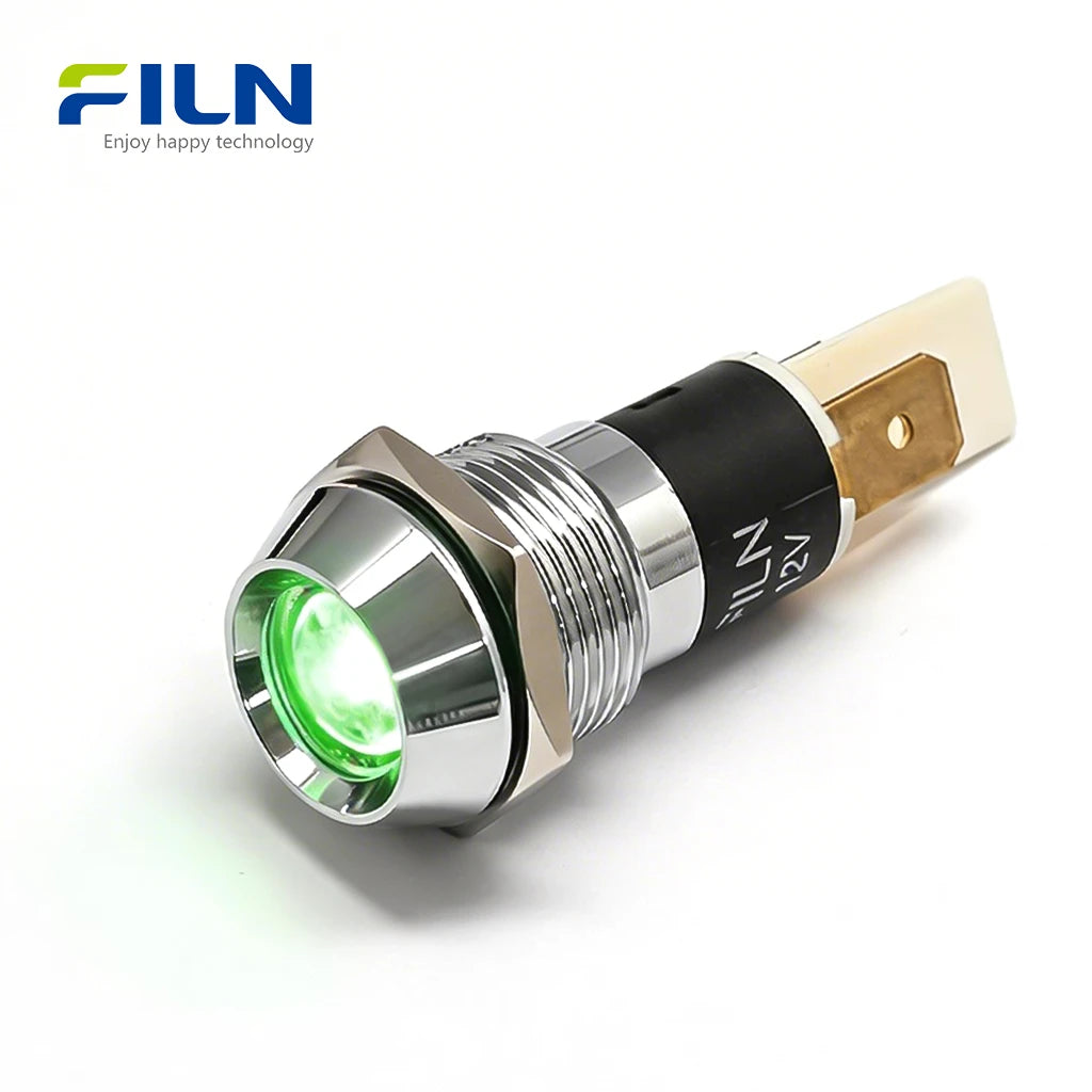 Product OverviewThe FILN 240V indicator light (Model: FL1M-16CJ-1) is a premium 16mm metal signal lamp designed for high-performance industrial and commercial applications. Certified by ISO9001, CE, VDE, RoHS, SGS, UL, and IP65/67, this indicator ensures maximum safety and reliability. Featuring a sleek concave head design, it offers superior visual clarity and protection for the LED lens. Whether used in industrial control panels, CNC machines, marine systems, or medical devices, this industrial-grade LED provides exceptional durability. Its 2-pin terminal construction allows for rapid, secure wiring compared to traditional lead types, making it the ideal choice for automation equipment and electrical cabinets requiring long-term stability and IP67 waterproof protection.