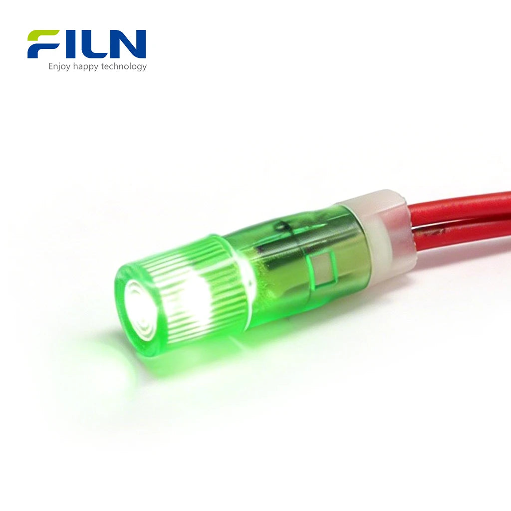 Product OverviewThis premium 12v panel mount led (Model: FL1P-06QW-1) is now for sale directly from the FILN factory. Featuring a compact 6mm mounting hole and a sleek round-head plastic design, this indicator light is optimized for space-saving industrial applications. Our plastic indicator light offers exceptional durability with ISO9001, CE, VDE, RoHS, SGS, UL, and IP65 certifications, ensuring global compliance and safety. Designed with a snap-in installation method and 15cm pre-soldered wire leads, it simplifies assembly in electrical cabinets and automation equipment. Whether you need 12-24V or 110-220V, we provide full customization to meet your specific industrial requirements.