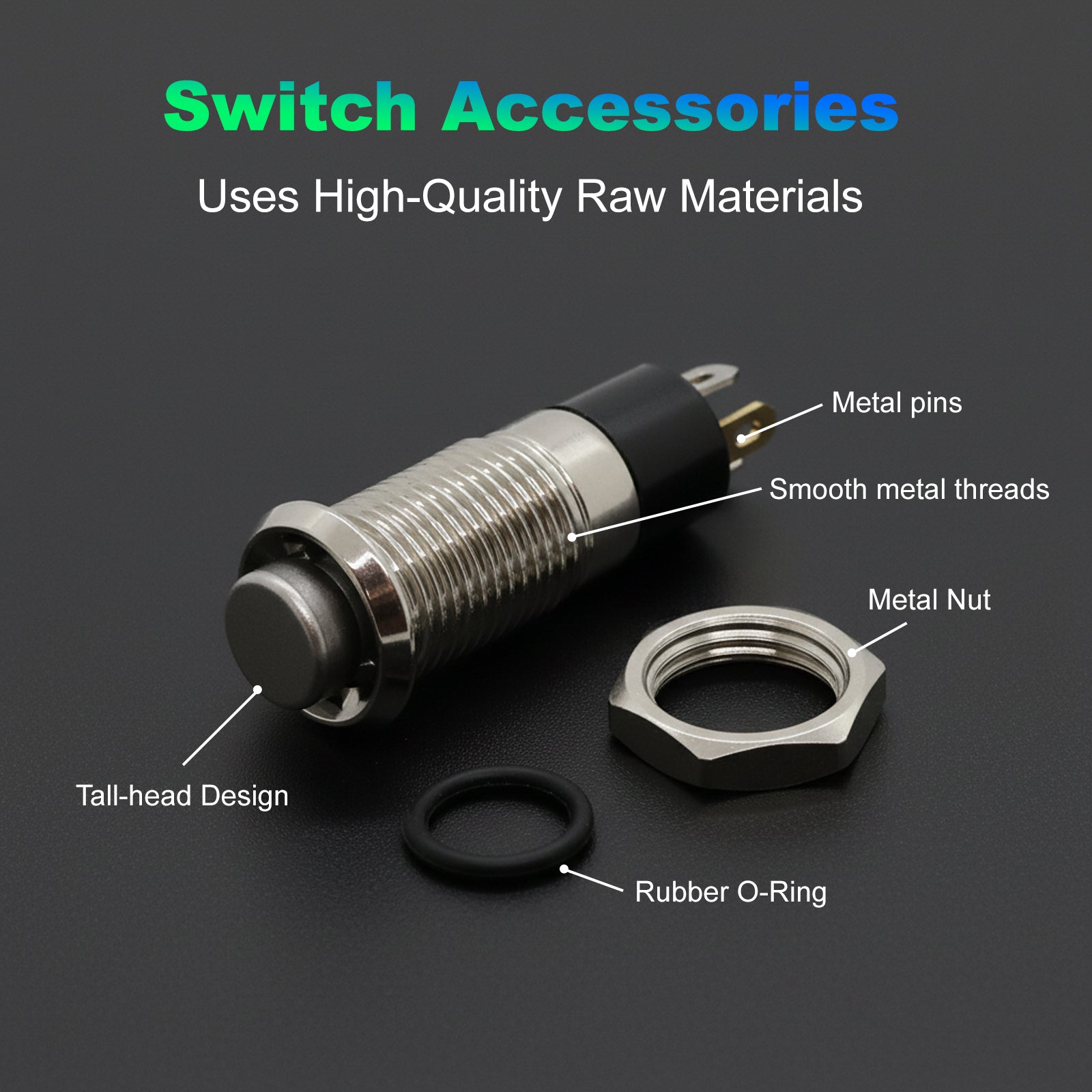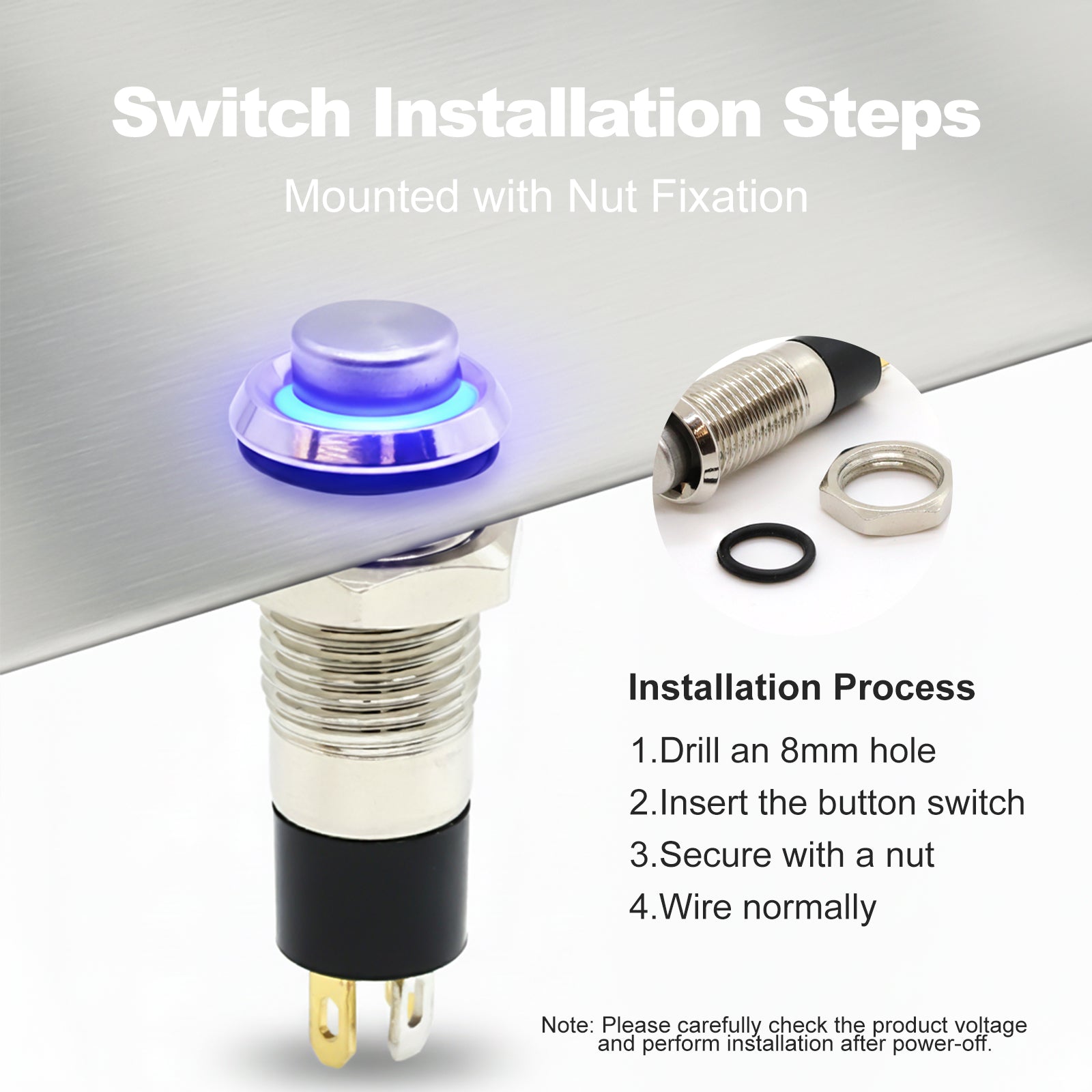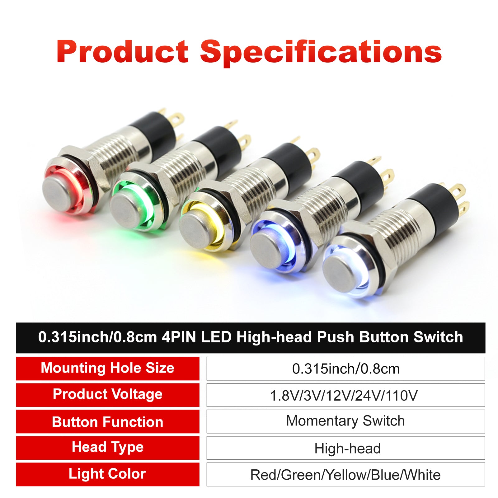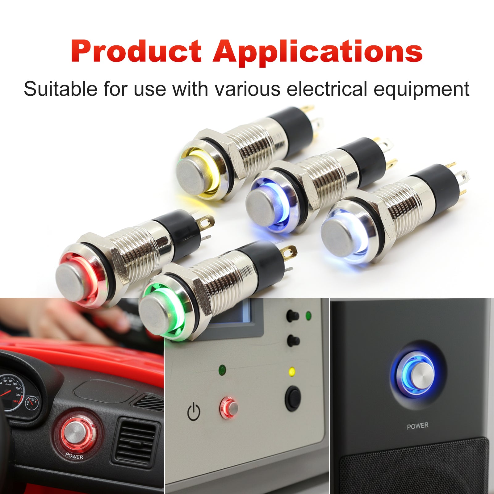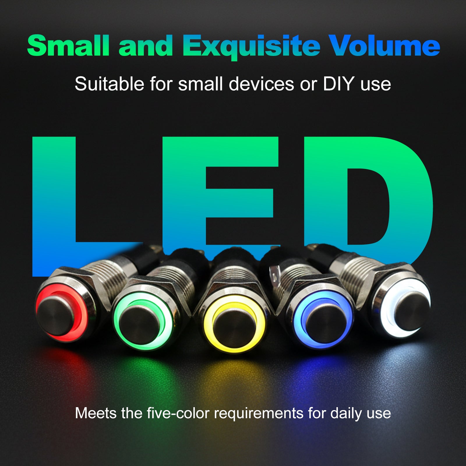 12MM metal push button switch can make five colors of light: red, yellow, blue, green, and white.