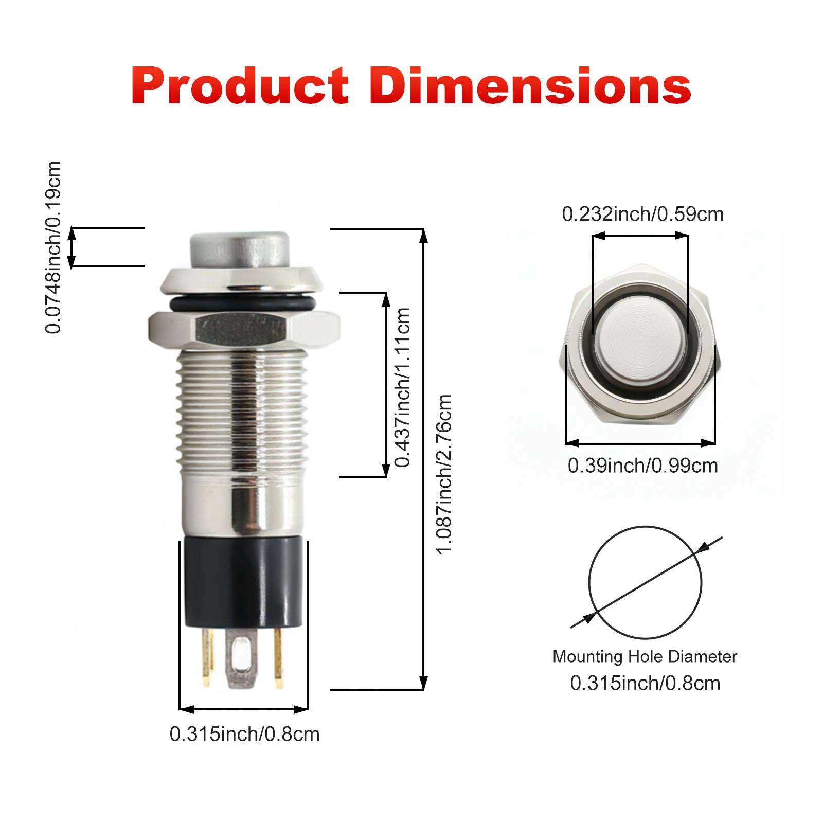 The waterproof rating of the push button switch is IP67, and the mounting hole size is 12MM.
