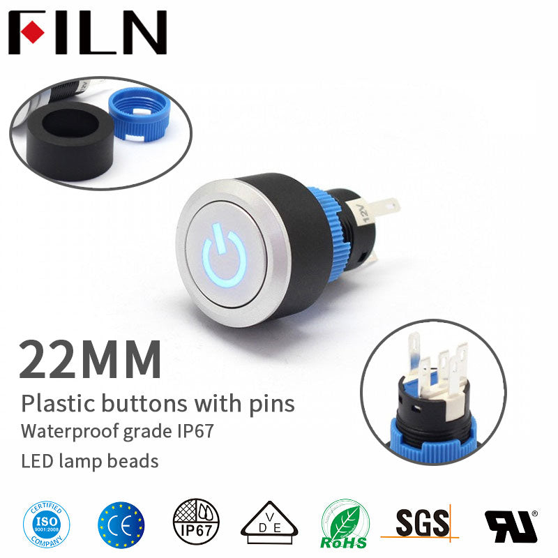 FILN 22mm Illuminated 12V Led Reset Round Momentary Plastic Power Logo Momentary Switch Price
