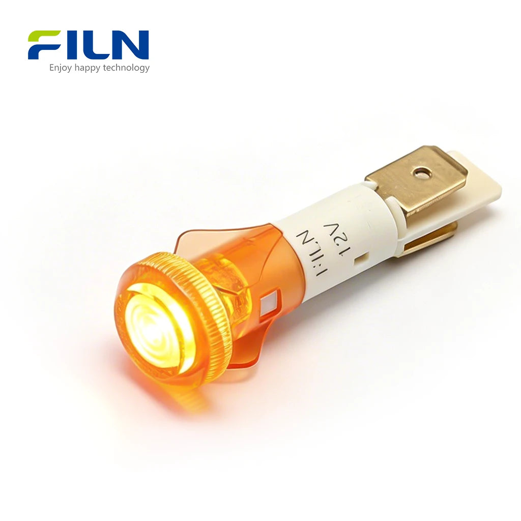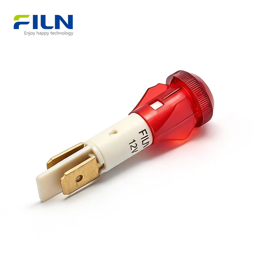 Product OverviewFILN high-performance 10mm led indicator lamps are now available for sale directly from our factory. These plastic indicator lamps (Model: FL1P-10QJ-2) are specifically designed for kitchen equipment and laboratory instruments. Featuring a 2-pin terminal design, they offer superior ease of installation compared to traditional metal versions. Our products carry international certifications including ISO9001, CE, VDE, RoHS, SGS, UL, and IP65. Whether you need a 220v snap-in panel mount indicator or a 12v plastic led warning light, these lamps provide a cost-effective, long-lasting solution for modern industrial panels.