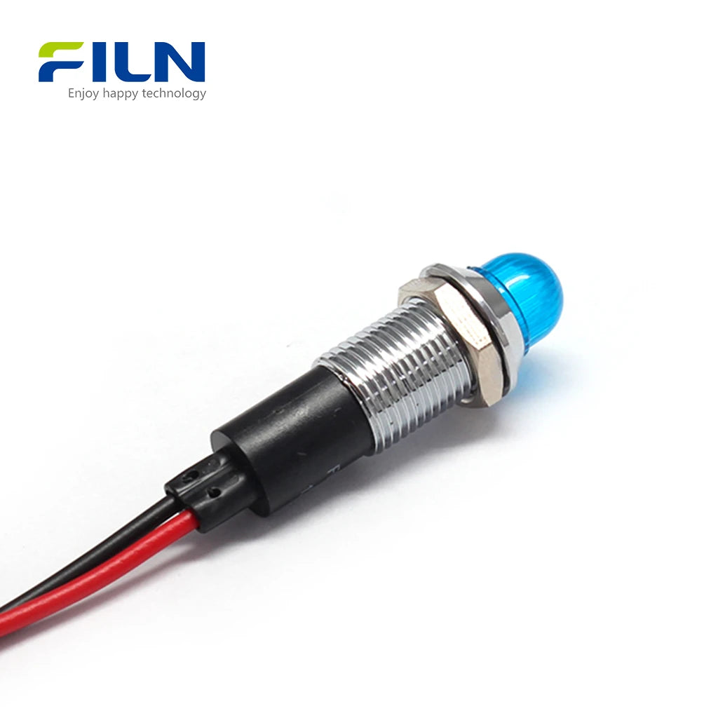 Product OverviewThe led panel indicator lights (Model: FL1M-12BW-1) by FILN are high-performance signaling components engineered for demanding environments. Certified with ISO9001, CE, VDE, RoHS, SGS, UL, and IP65/67, these 12mm indicators feature a robust metal domed head (球头) design for maximum 180-degree visibility. Ideal for industrial control panels, medical devices, marine yachts, and new energy systems, they offer a sleek finish in silver or black. The 15cm pre-wired leads provide a superior, vibration-resistant connection compared to traditional pin terminals, ensuring easy installation and a long service life of 50,000 hours.