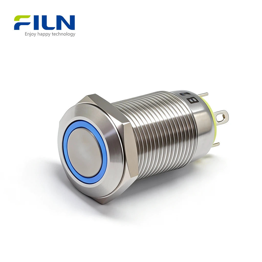 Product OverviewThe led push button switch 12v (Model: FLM12-FJ-1-E) is a high-durability industrial control component manufactured by FILN. This 12mm metal push button switch features a premium 304 Stainless Steel housing and a vibrant ring LED indicator. Designed for extreme reliability, it carries ISO9001, CE, VDE, RoHS, SGS, UL, and IP65 certifications. Its 4-pin terminal design facilitates rapid integration into industrial control panels, automation equipment, and marine systems. Whether used as a power starter or a functional signal button, this switch provides superior tactile feedback and a 500,000-cycle mechanical life, ensuring consistent performance in the most demanding B2B applications.