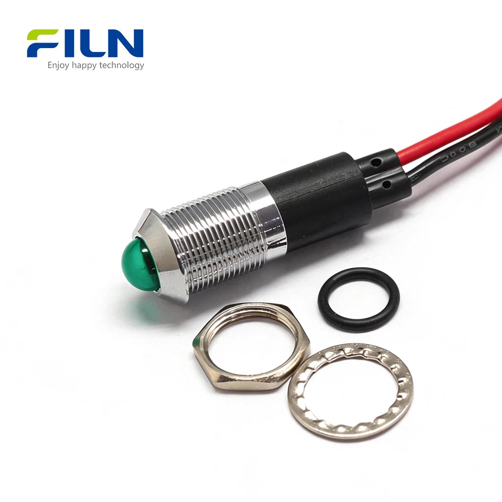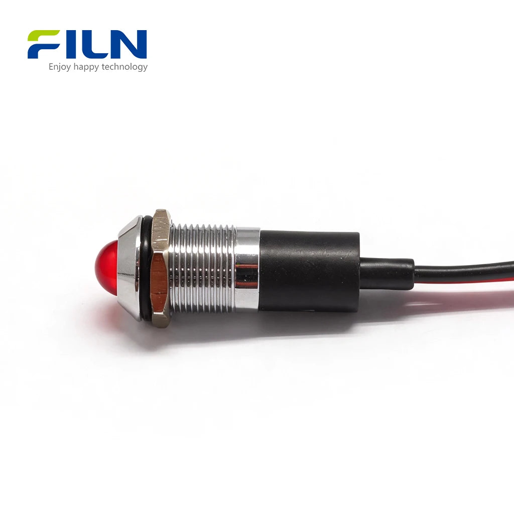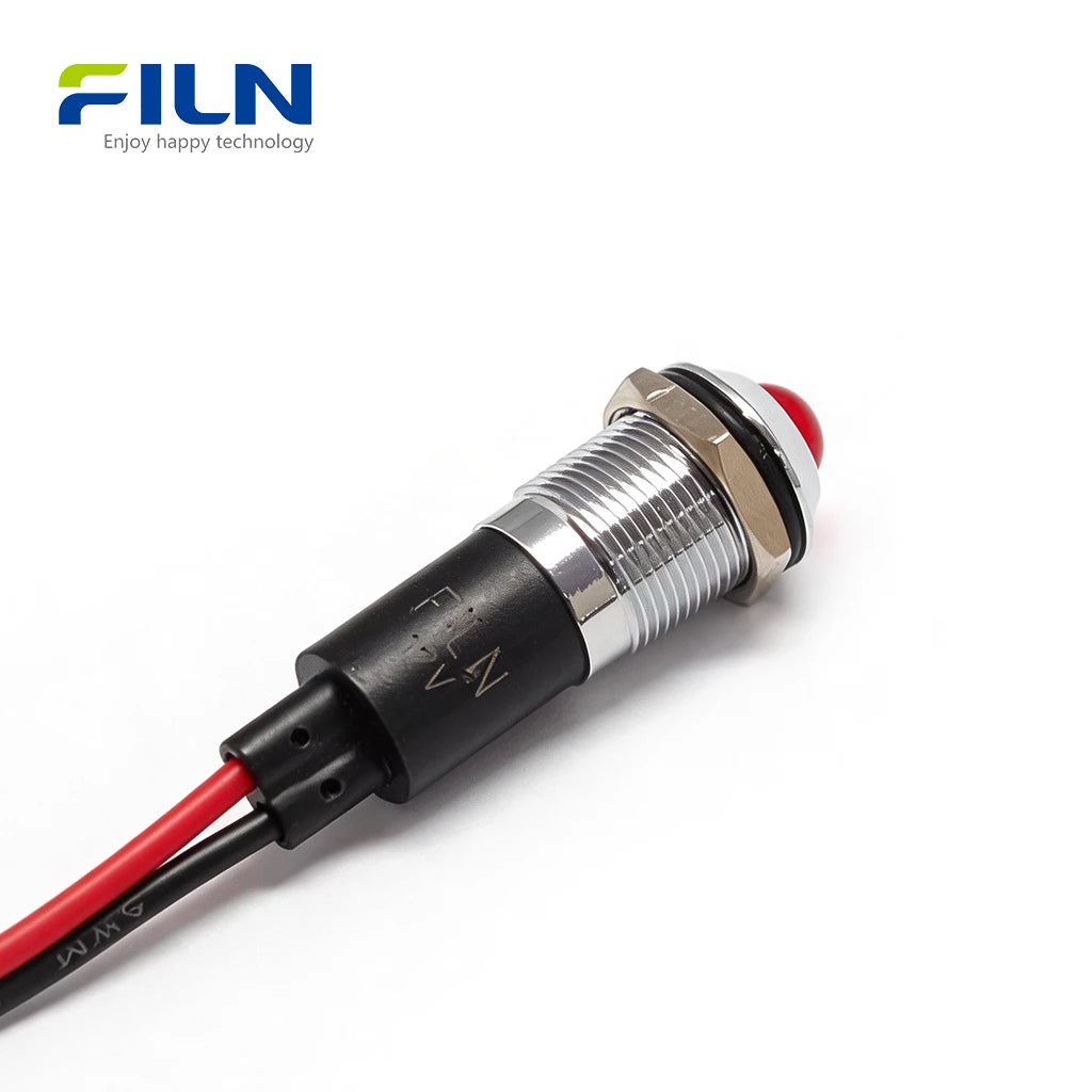 The FILN 12mm panel mount indicator lights (Model: FL1M-12SW-1) are engineered for high-performance signaling in demanding environments. Featuring a robust metal high-head design and IP67 waterproof rating, these lights offer superior visibility and durability compared to standard flat-head versions. Certified by ISO9001, CE, VDE, RoHS, SGS, UL, and IP65[cite: 1], they ensure global compliance for industrial control panels, CNC machines, medical devices, and marine systems. The pre-wired 15cm wire lead design simplifies installation compared to traditional pin terminals, providing a secure, vibration-resistant connection[cite: 4].