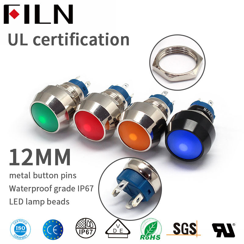 12MM metal push button switch can make five colors of light: red, yellow, blue, green, and white.